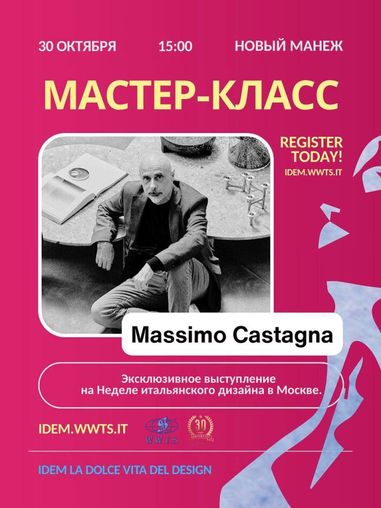 30 октября в 15:00 в Новом Манеже в Москве пройдет мастер-класс знаменитого итальянского дизайнера и архитектора Массимо Кастанья.